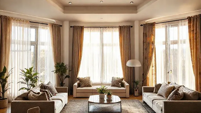 A sala de estar e os ambientes de trabalho em casa merecem atenção especial, pois misturam estilo e funcionalidade. Cortinas de tecidos translúcidos, como voil ou poliéster, proporcionam luminosidade suave e privacidade sem pesar no ambiente. Elas também conferem aquele movimento charmoso à decoração.